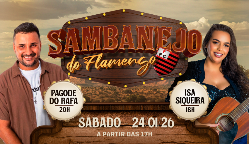No sábado, 24/01/26, o Flamengo vira palco de uma tarde e noite cheias de música, animação e aquele clima bom que só o clube tem.